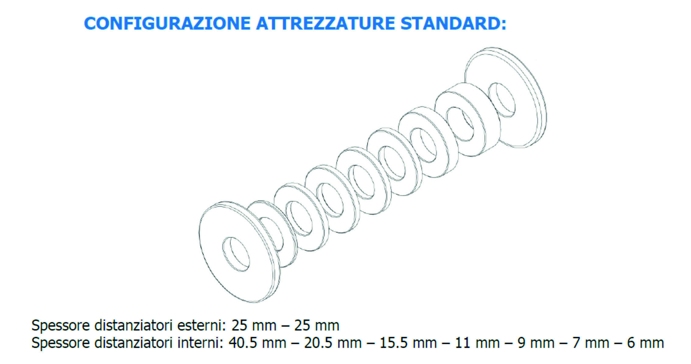 Spessore distanziatori interni: 40,5 mm. – 20,5 mm. – 15,5 mm. – 11 mm. – 9 mm. – 7 mm. – 6 mm.